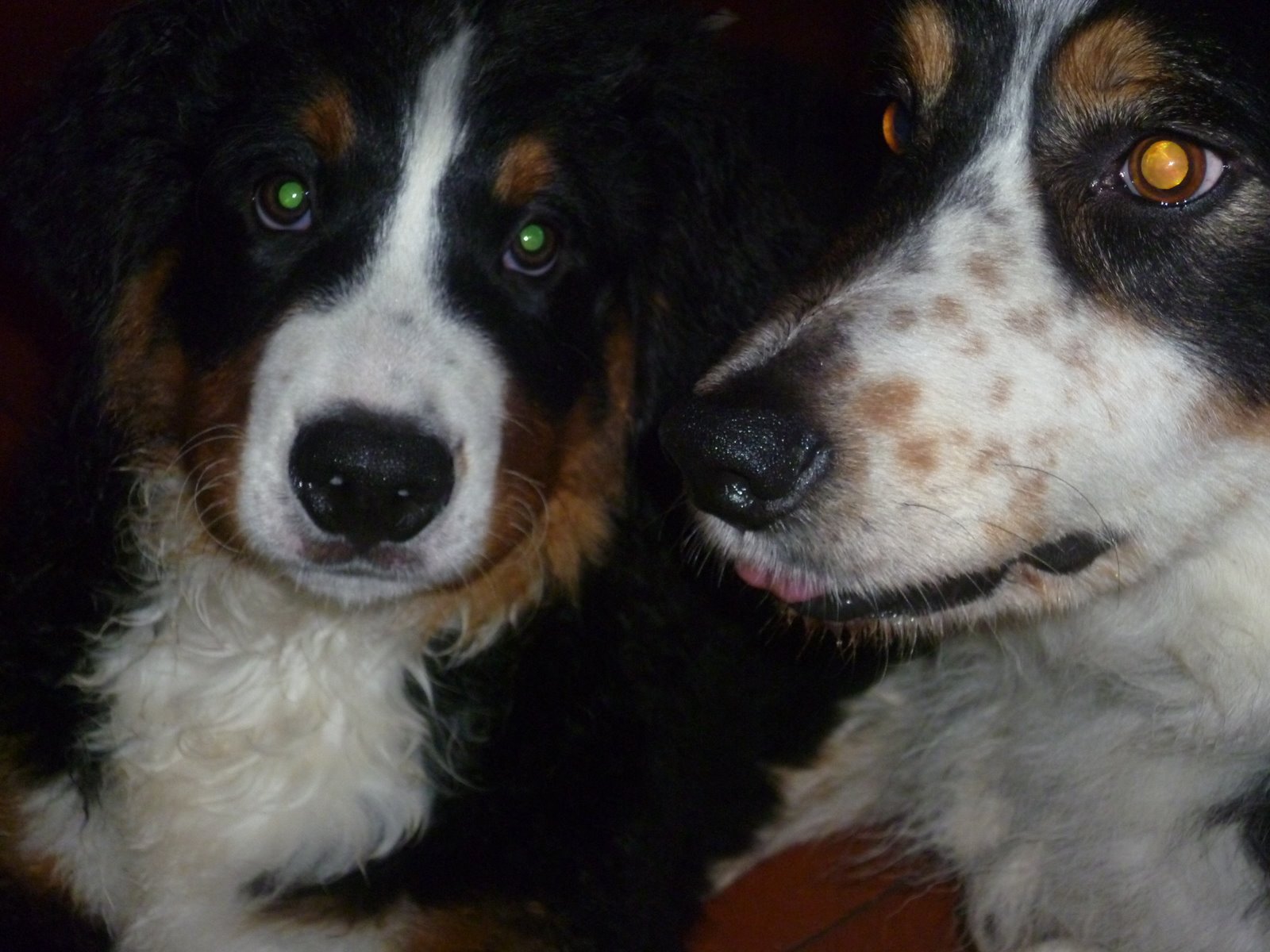 Bonnie, one of Lucy and Rocky's pups with her friend Bill.